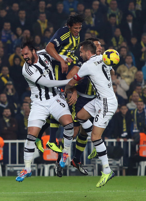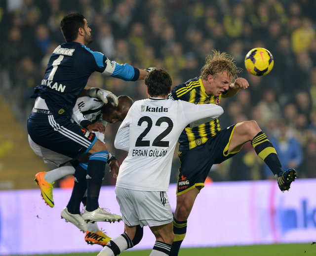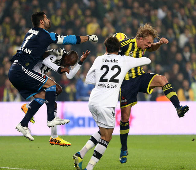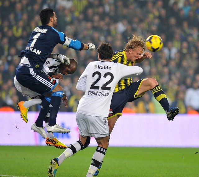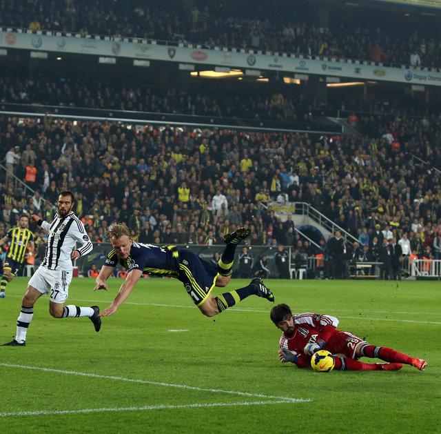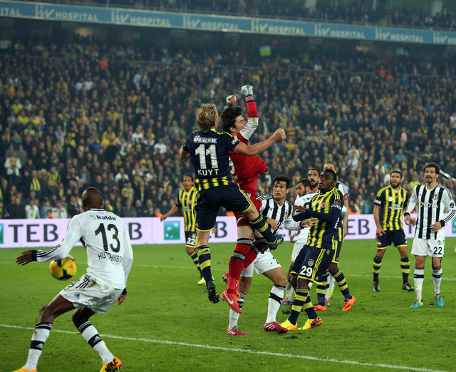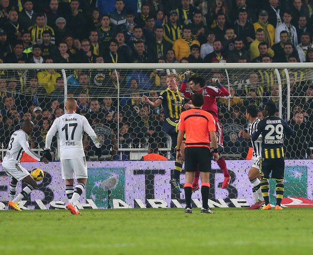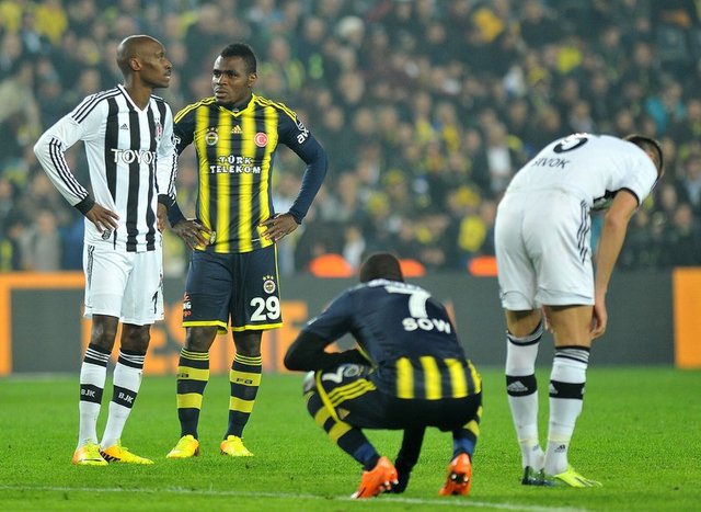 Dünya derbi görsün... Spor Toto Süper Lig'in 13. haftasındaki nefes kesen derbide Fenerbahçe ile Beşiktaş 3-3 berabere kaldı. Şükrü Saracoğlu'ndaki maçta Fenerbahçe'nin gollerini Emenike, Sow ve Kuyt attı. Beşiktaş'ın sayılarını Olcay ve Almeida (2) kaydetti. 30'da Meireles, 69'da Necip kırmızı kart gördü.
