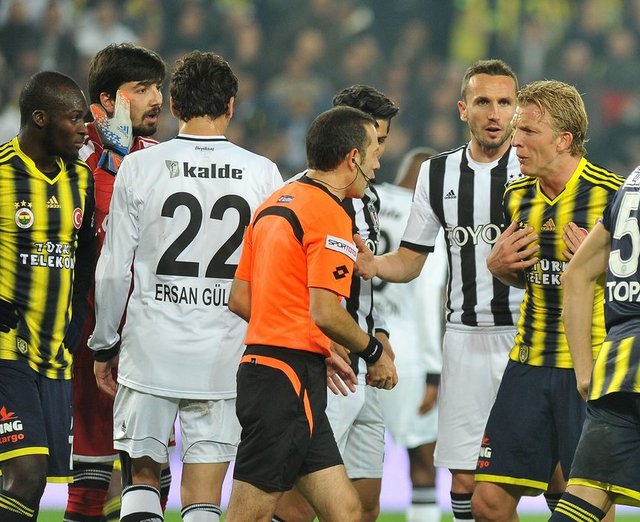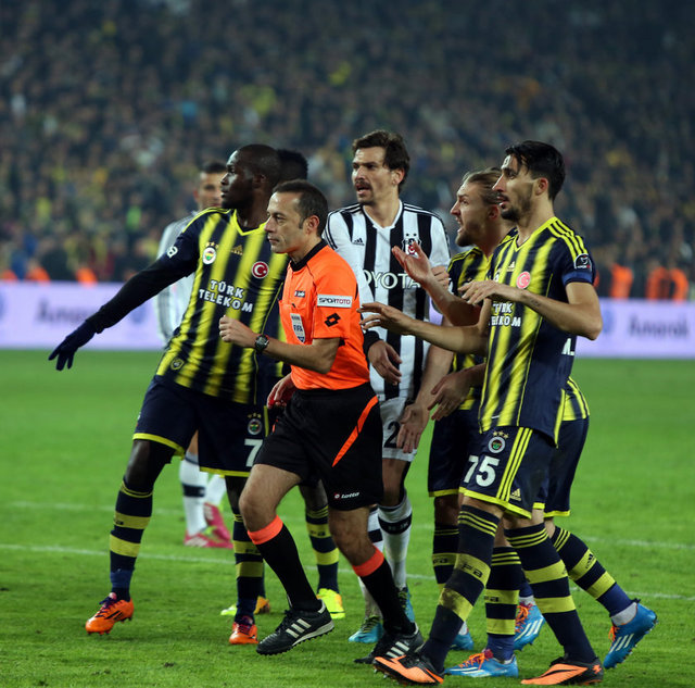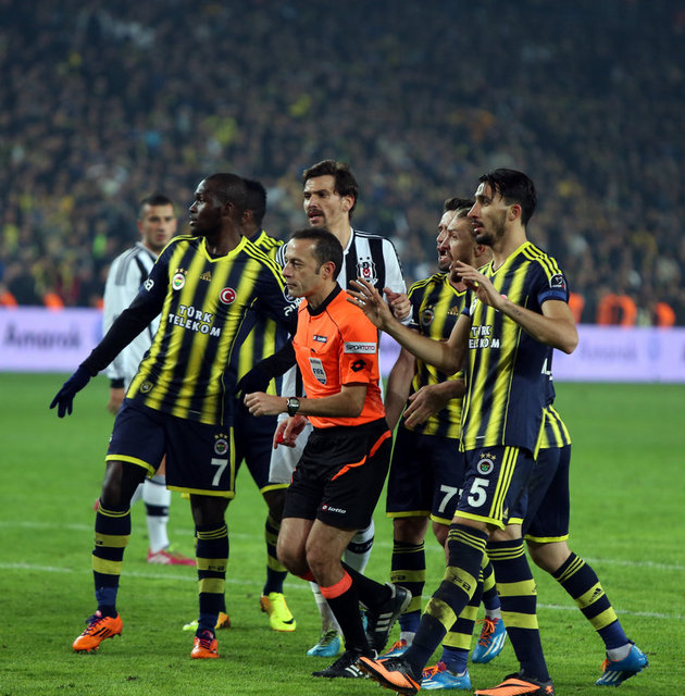 Fenerbahçeli futbolcular özellikle maçın ikinci yarısında hakem Cüneyt Çakır'a verdiği kararlar nedeniyle çok sayıda pozisyonda tepki gösterdi. İkinci yarıda öncesinde ofsayt veya faul olduğu gerekçe sayılmayan gollerle ilgili hakeme itirazlarda bulunan futbolcular, Beşiktaş ceza alanında oluşan çok sayıda pozisyon nedeniyle de Çakır'a tepki gösterdi. Karşılaşmanın ardından Fenerbahçeli futbolcuların bazıları saha içinde hakem üçlüsünün yanına gitti.