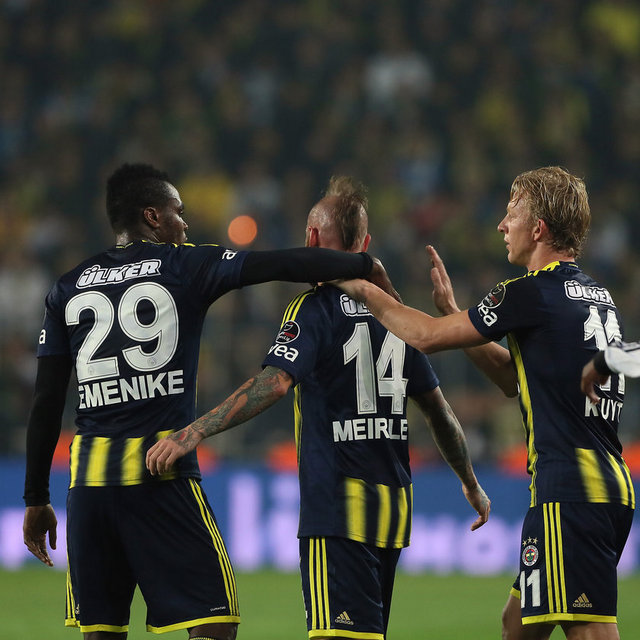 Fenerbahçe'nin Nijeryalı forveti Emenike, sarı-lacivertli formayla ilk kez bir derbi maçta golle buluştu. Kardemir Karabükspor formasını giydiği 2010-2011 sezonunda siyah-beyazlı takımla yaptıkları maçlarda 2 gol atan Emenike, Fenerbahçe formasıyla siyah-beyazlı takıma 3. golünü kaydetti. Fenerbahçeli futbolcu derbide attığı golle bu sezon Süper Lig'de 5. golüne ulaştı. Beşiktaş'a karşı ilk gülünü atan Kuyt, bu sezon ligde gol sayısını 6'ya yükseltti.