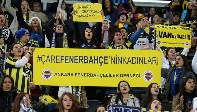 Kadın ve çocuk taraftarlar tribünlere girdikleri ilk andan itibaren büyük bir coşkuyla maçı bekledi. Tribünlere gelen yaklaşık 25 bin kadın ve çocuk taraftar, maç başlayana kadar tezahürat yaptı.