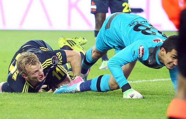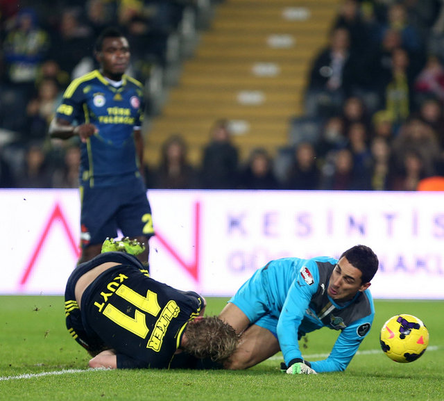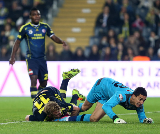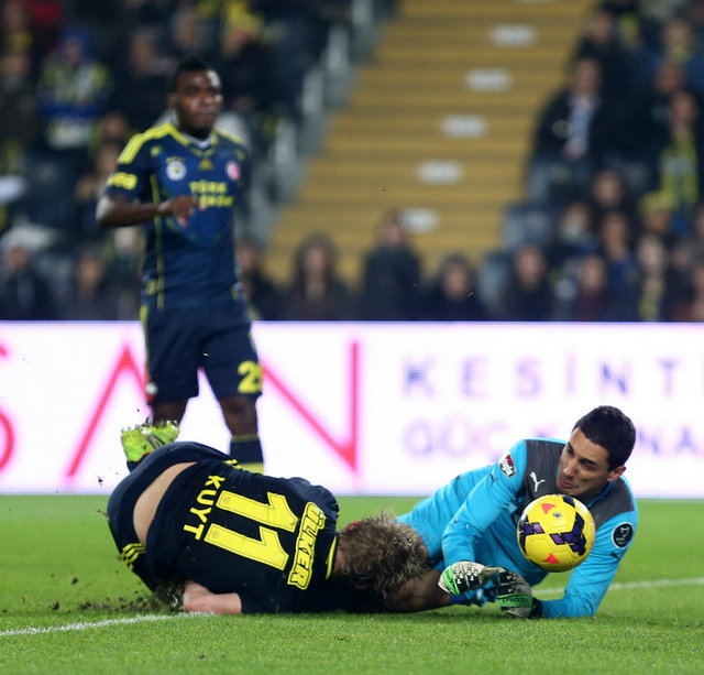 36. dakikada Sow'un savunma arkasına attığı topla ceza sahasına giren Emenike, uygun pozisyondaki Kuyt'a meşin yuvarlağı attı. Kuyt'ın kale sahası içinde yere düşerken yaptığı vuruşta açıyı iyi daraltan kaleci Evren Özyiğit, meşin yuvarlağı kornere attı.