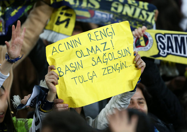 Türk Telekom kale arkası tribüne taraftar alınmazken, bu tribünün üst bölümüne, tribünü tamamen kapatan sarı ve lacivert renklerdeki büyük bayrak serildi.