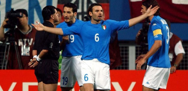 Hakem ilk önce İtalya’nın bariz golünü vermedi. Daha sonra Francesco Totti’yi kendisini kandırmaya yönelik hareket yaptığı gerekçesiyle oyundan attı.