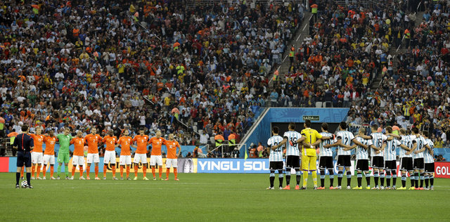 2014 Dünya Kupası yarı final maçında Hollanda ile Arjantin finalde Almanya'ya rakip olmak için karşılaştılar. Karşılaşmayı ise bu turnuvada gururumuz olan Cüneyt Çakır yönetti. İki takımında kontrollü oynadığı karşılaşmada 90 dakika 0-0 sona erdi. Temsilcimiz Cüneyt Çakır'ın yönettiği karşılaşmanın uzatma dakikaları da 0-0 sona erince seri penaltı atışlarına geçildi.