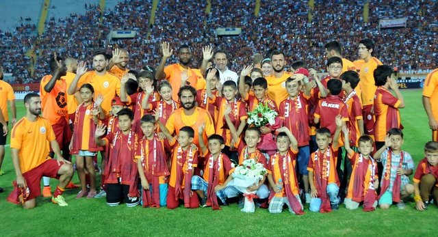 Daha sonra Galatasaraylı oyuncular da çocukların yanına gelerek çeşitli hediyeler verirken Aletico Madridli futbolcular da ısınmalarını tamamladıktan sonra çocukların yanına geldi.