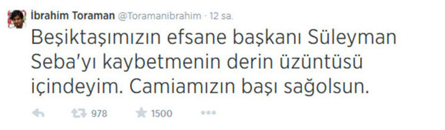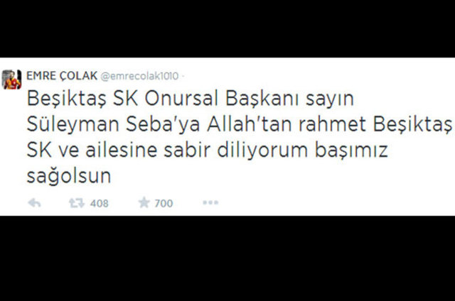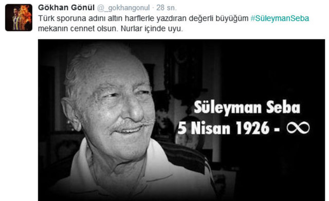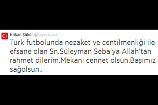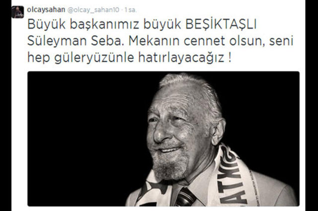 "Değerli ağabeyimin cenaze töreninde konuşmak gerçekten çok güç. Spor camiasına idol olmuş, gönüllerde yer tutmuş bir insandı Seba. Bunun ispatını bugünkü cenaze töreninde görüyoruz. Şimdi dirilse ‘ben bunları yapmadım’ der. 6 ay süren rahatsızlığı boyunca desteklerini esirgemeyen Beşiktaş Başkanı Fikret Orman ve Rahmi Koç’a teşekkürlerimi sunuyorum. Süleyman Seba, sadece Beşiktaş’ın değil Türk sporunun onursal başkanıydı. Süleyman ağabey; ruhun şad, cennetin mekan, yolun açık olsun."