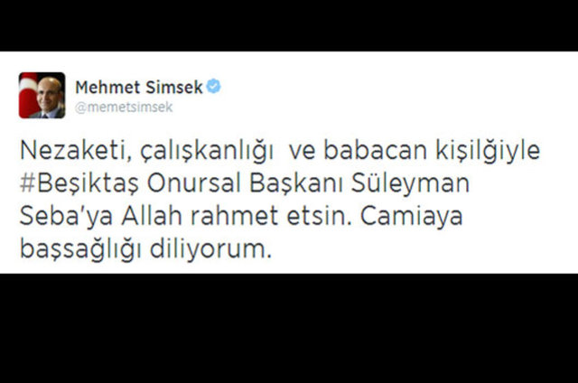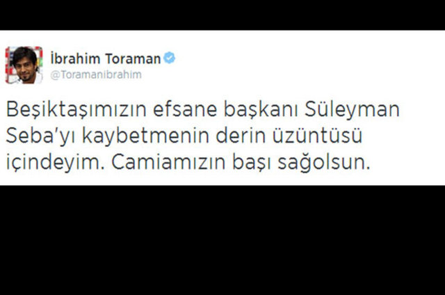 * Yıldırım Demirören de efsane bir başkanın kaybedildiğini belirterek, "Sayın Seba sadece Beşiktaşlıların değil Türkiye'nin örnek aldığı bir kişiydi. Sevenlerine başsağlığı diliyorum" şeklinde konuştu.