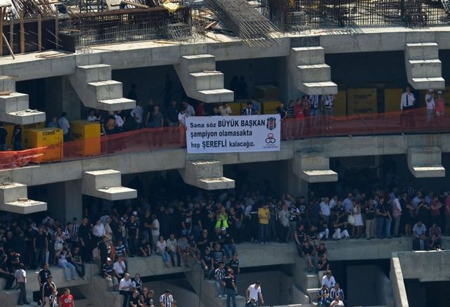 * Öte yandan stada, Süleyman Seba'nın "İyi insan olmadan iyi Beşiktaşlı olunmaz" sözü ve "Sana söz büyük başkan, şampiyon olmasak da hep şerefli kalacağız" yazısının yer aldığı pankartlar asıldı.