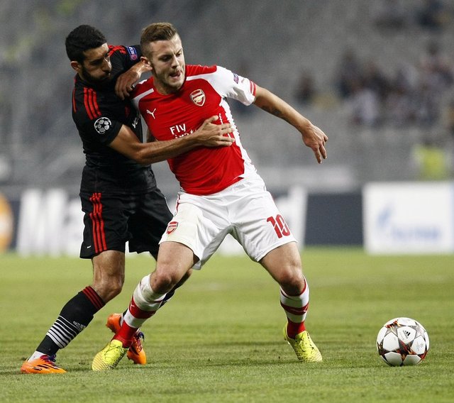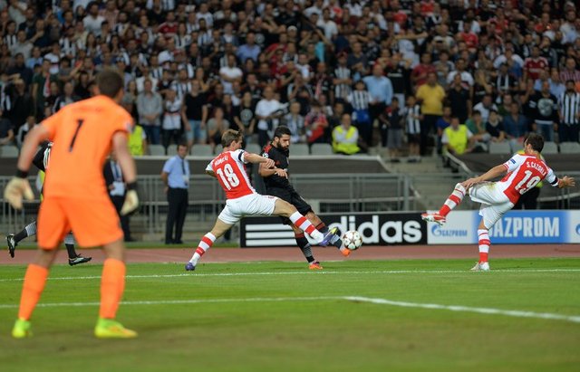 38. dakikada Wilshere, Beşiktaş savunmasının arasından şut şansı buldu. İngiliz oyuncunun, plase vuruşunda kaleci Tolga uzanarak meşin yuvarlağa sahip oldu.