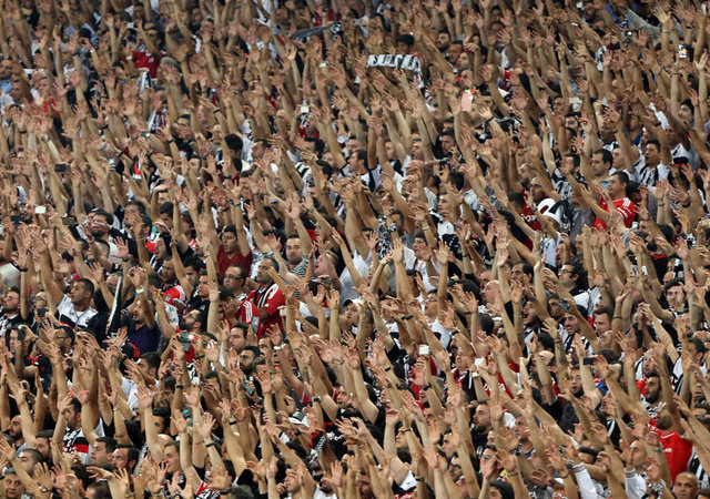 Beşiktaş ile Arsenal arasında oynanan UEFA Şampiyonlar Ligi play-off eleme turu ilk maçında siyah-beyazlı taraftarlar takımlarını yalnız bırakmadı. Karşılaşmanın oynandığı Atatürk Olimpiyat Stadı'na gelen 50 bine yakın Beşiktaş taraftarı, tezahüratlar ve şarkılarla takımlarına destek verdi. Taraftarlar, doğu tribününde yaptıkları bayrak şovla stadı adeta bayram yerine çevirdi. Bu arada Londra'dan gelen yaklaşık 100 Arsenal taraftarı da kendilerine ayrılan kale arkası tribünden maçı takip etti.