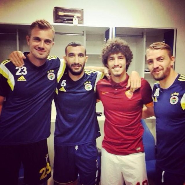 Karşılaşma öncesi yapılan ısınma idmanının ardından Romalı oyuncu Salih Uçan, Fenerbahçe yedek kulübesine giderek eski arkadaşlarını ve eski hocası İsmail Kartal'ı selamlayarak, başarılar diledi.
