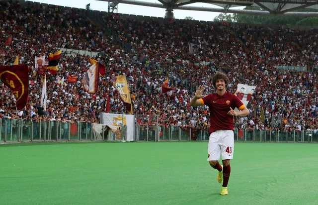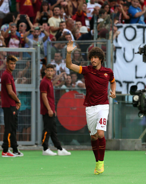 Roma'nın Fenerbahçe'den kiraladığı Türk futbolcu Salih Uçan da sahaya çağrıldığında taraftarlardan alkış aldı.