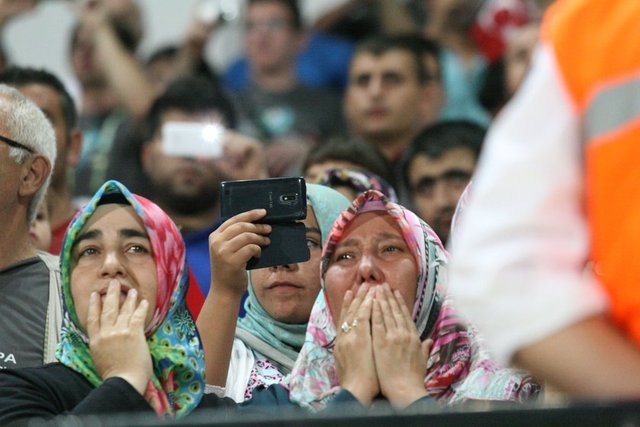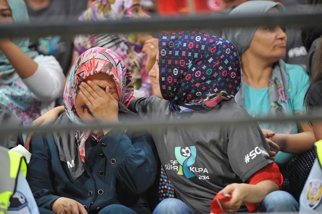 Soma'dan milli takım otobüsleriyle Manisa'ya getirilen ve TFF'nin verdiği yemeğe katılan maden faciasında hayatını kaybedenlerin aileleri, müsabakayı kendilerine ayrılan bölümde takip etti. Türk bayrağı dağıtılan aileler, yerlerini aldığı sırada tribündekiler alkışladı ve "Her yer Soma, her yer karanlık" şeklinde tezahürat yaptı.
