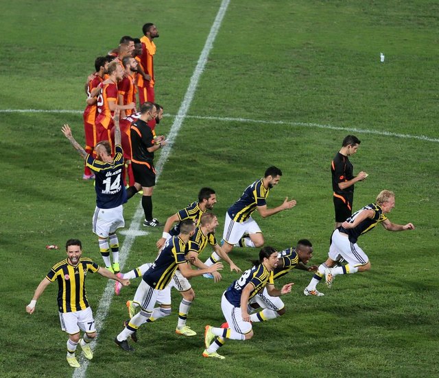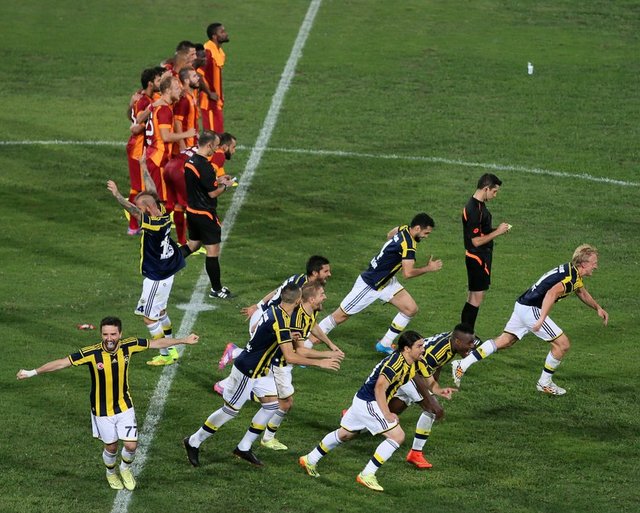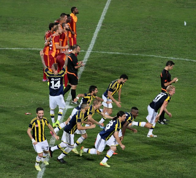 Süper Kupa'yı penaltı sonuçları sonrası Galatasaray'ı 3-2 yenen Fenerbahçe kazandı. Süper Kupa finalinde Fenerbahçe ile Galatasaray arasında oynanan mücadelenin 90 dakikası golsüz sona erdi. Uzatmalarda da gol sesi çıkmayınca karşılaşmada penaltı atışlarına geçildi. Fenerbahçe'de Kuyt, Meireles ve Kadlec penaltı atışlarını gole çeviren isimler oldular. Caner ve Mehmet Topuz'un penaltı atışılarını kaleci Muslera kurtardı. Galatasaray'da ise Olcan Adın ve Burak Yılmaz penaltı atışını gole çevirdiler. Selçuk İnan ve Melo, kullandıkları penaltı vuruşunu üstten dışarı attılar. Yekta'nın penaltı vuruşuna ise Volkan izin vermedi.
