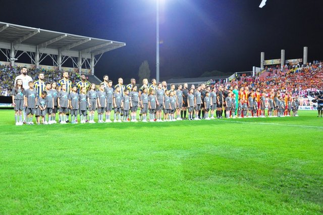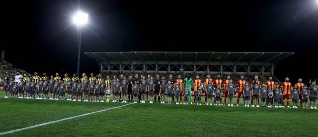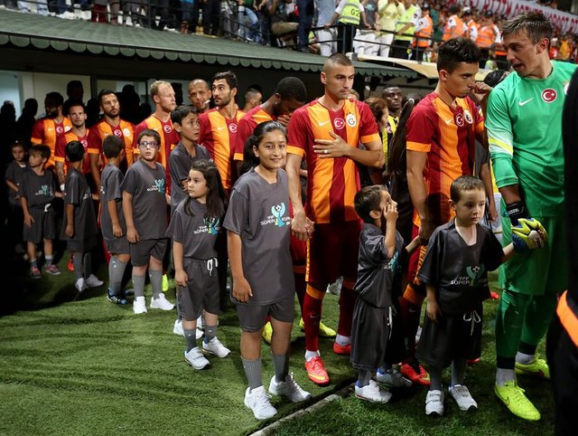 Soma'daki maden faciası anısına Fenerbahçe ile Galatasaray arasında Manisa'da oynanan TFF Süper Kupa maçına her iki takımın futbolcuları Soma'da hayatını kaybeden madencilerin çocuklarıyla çıktı.