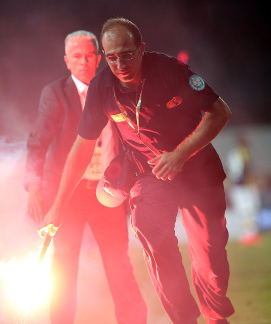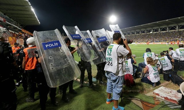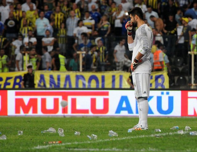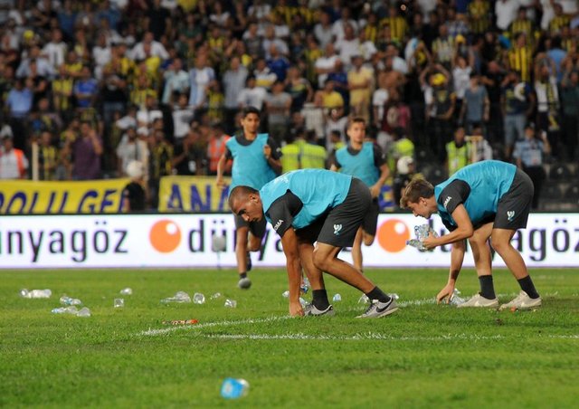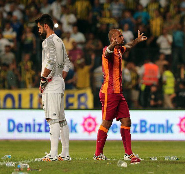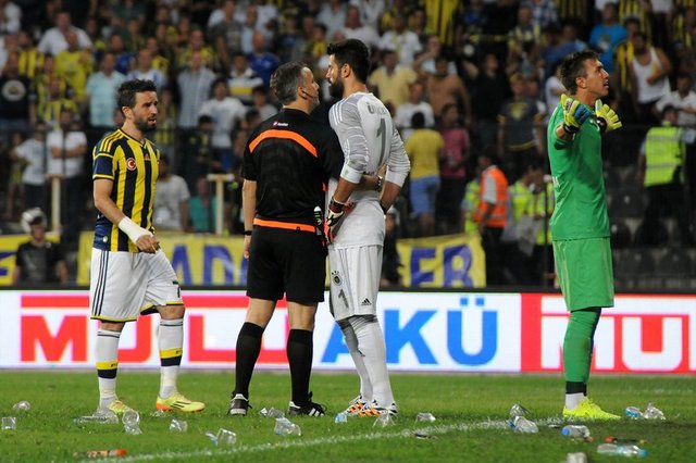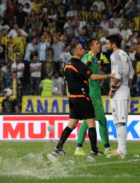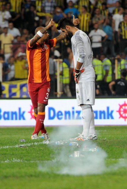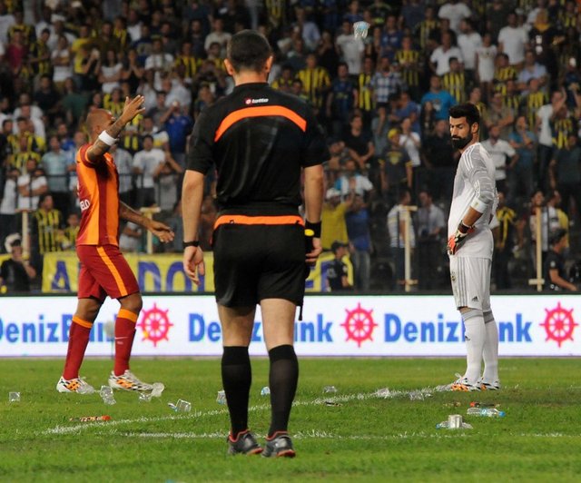 Karşılaşmanın ikinci yarısı başlamadan önce Fenerbahçe kalecisi Volkan Demirel'in bulunduğu Spil tarafındaki kaleye doğru Galatasaray taraftarları pet şişeler fırlattı. Galatasaraylı futbolcularının uyarısının ardından sahadaki yabancı maddeler temizlendi ve hakem Mustafa Kamil Abitoğlu tarafından anons yaptırıldı.