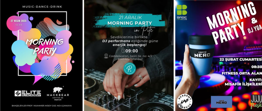 Bu hareket Türkiye’de, geçen seneden beri, özellikle büyük şehirlerde giderek yaygınlaştı. Instagram hesaplarında sabah partilerinin anonsunu yapan mekanlar, iş çıkışı eğlenemeyenlerin ya da gün içinde motivasyon arayanların favorisi haline gelmiş durumda.