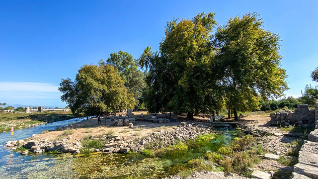 Antik kentte bulunan kilisenin temelleri ve sütunlu cadde ise kentin ortasından geçen Limyros Nehri'nin altında kalıyor. Doğal havuz işlevi gören nehir, kenti gezmeye gelenler tarafından serinlemek için tercih ediliyor.