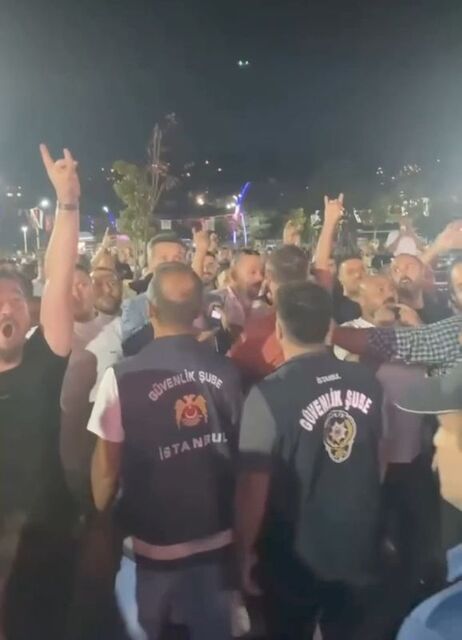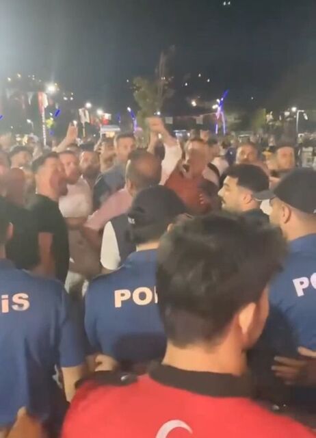 Sahneye doğru sloganlarla yönelen kişileri alanda bulunan polis ekipleri zorlukla durdurdu.