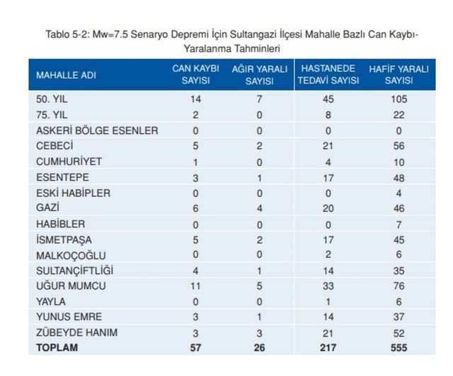 **Senaryo depremi için Sultangazi ilçesi "Mahalle bazlı can kaybı-yaralanma" tahminleri