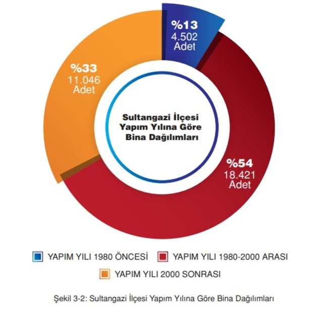 Sultangazi ilçesinde yapım yılına göre bina dağılımları şu şekildedir; 1980 öncesi 4.502 adet (%13), 1980-2000 arası 18.421 adet (%54), 2000 sonrası 11.046 adet (%33)