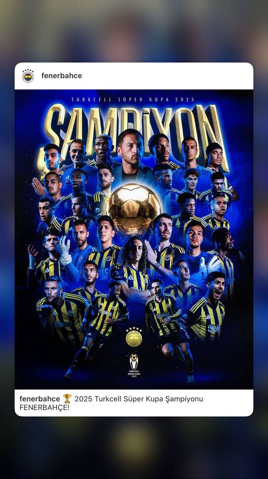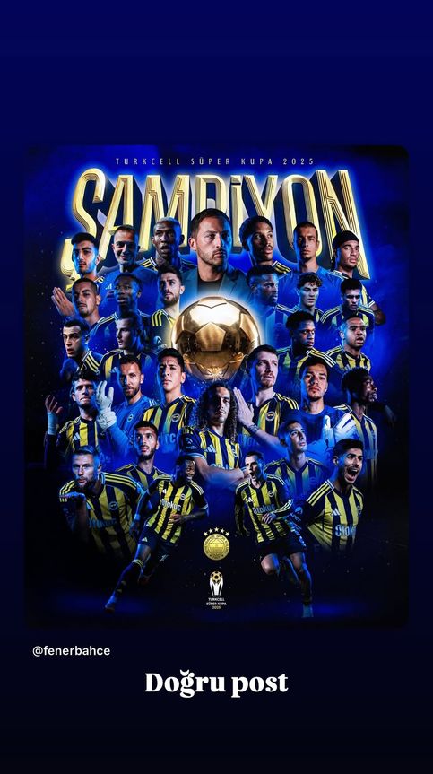 Turkcell Süper Kupa finalinde Galatasaray ile Fenerbahçe kozlarını paylaştı. Büyük heyecana sahne olan dev derbide sarı-lacivertli ekip, rakibini, 2 - 0 mağlup ederek kupanın sahibi oldu. Karşılaşmanın ardından birçok Fenerbahçeli ünlü, sosyal medya hesaplarından bulundukları paylaşımlarla kupa coşkusuna ortak oldu.