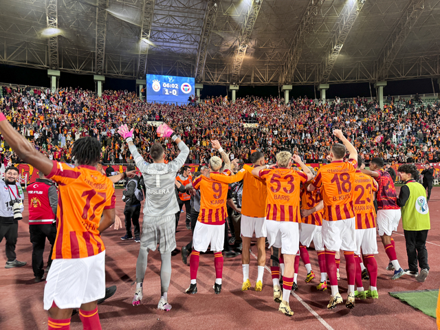 Bu arada Galatasaraylı futbolcular, tribünlerdeki taraftarlarıyla sevinç gösterisi yaptı.