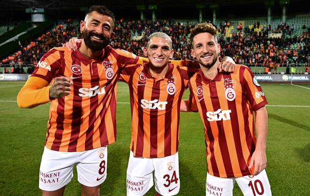 Galatasaraylı futbolcular, sarı - lacivertlilerin sahadan ayrılmasının ardından kutlamalara başladı.