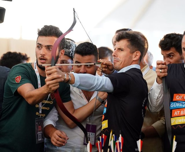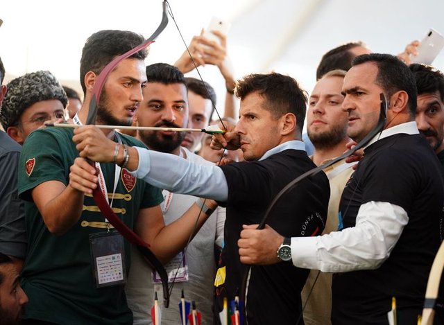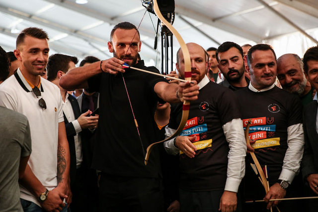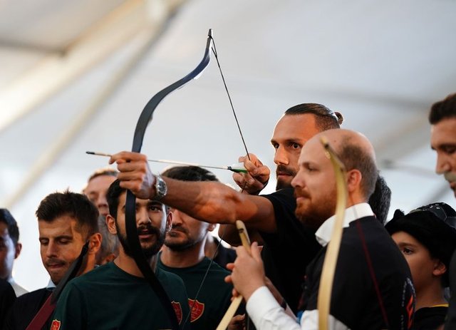 Galatasaraylı Muslera ve Falcao, Fenerbahçe'den Emre Belözoğlu ve Vedat Muric, Etnospor Kültür Festivali'nde ok attı