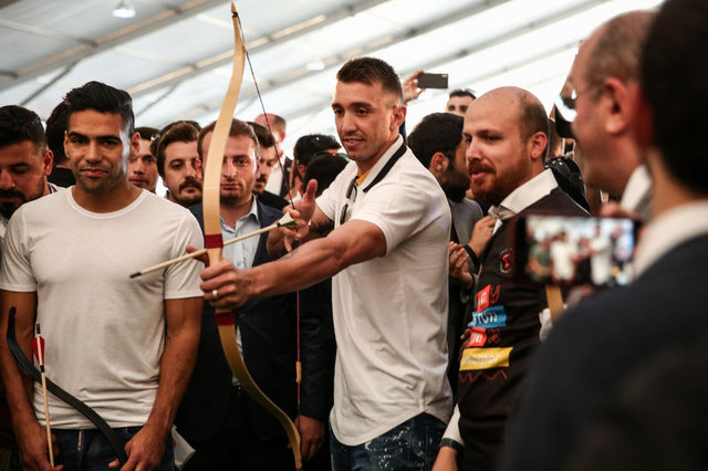 Galatasaraylı futbolcular Falcao ve Muslera ile kulübün ikinci başkanı Abdurrahim Albayrak da okçuluk alanına ulaştı.