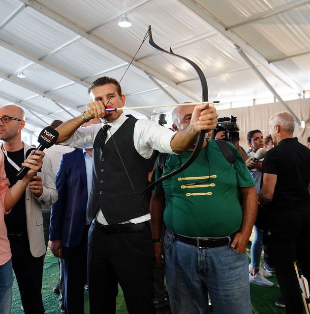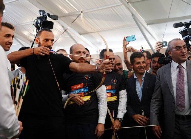 İzdihamdan dolayı kısa süre alanda kalan oyuncular, Bilal Erdoğan ile beraber ok attıktan sonra alandan ayrıldı.