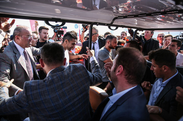 Bu sırada yoğun ilgiden dolayı araç bir süre hareket etmekte zorlandı.