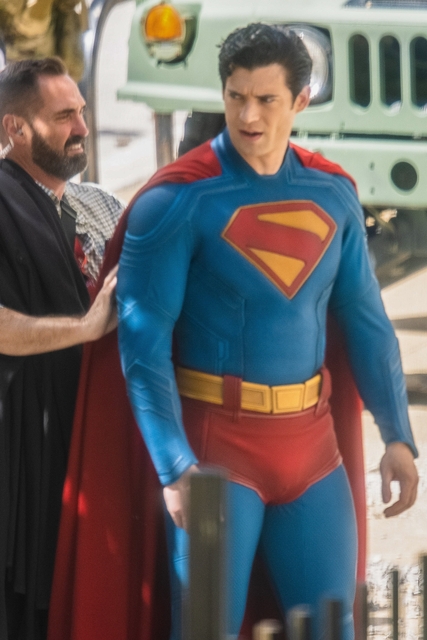 Superman rolündeki David Corenswet, setteki kostümlü haliyle objektiflere yansıdı.