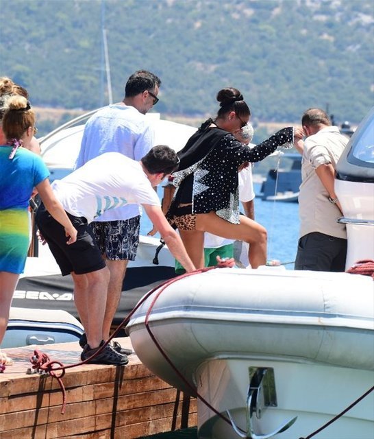 Bodrum Türkbükü'nde eşi Ozan Baran ile tatil yapan sosyetik güzel Süreyya Yalçın, 7 kilo ağırlığındaki Swarovski taşlı plaj kıyafeti ve şeffaf topukluları ile yine dikkatleri üzerine çekti. Yalçın, bikinisinin altına giydiği şeffaf topuklu ayakkabı ve Swarovski taşlı plaj elbisesiyle adeta podyumda gibiydi
