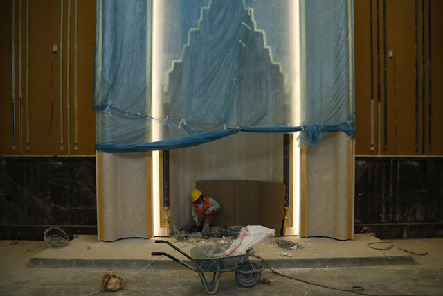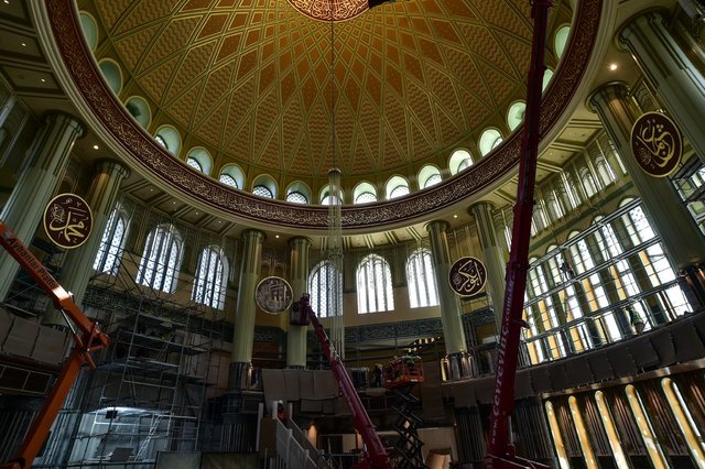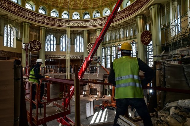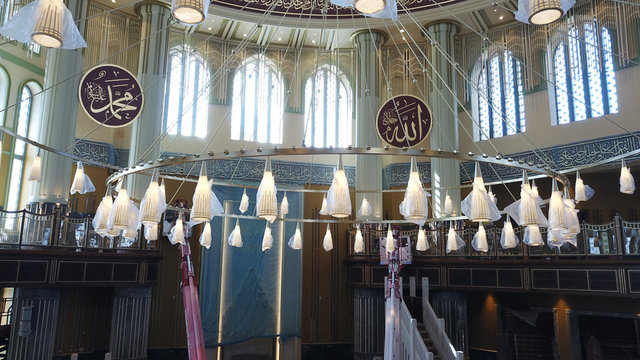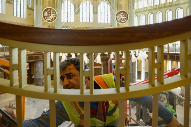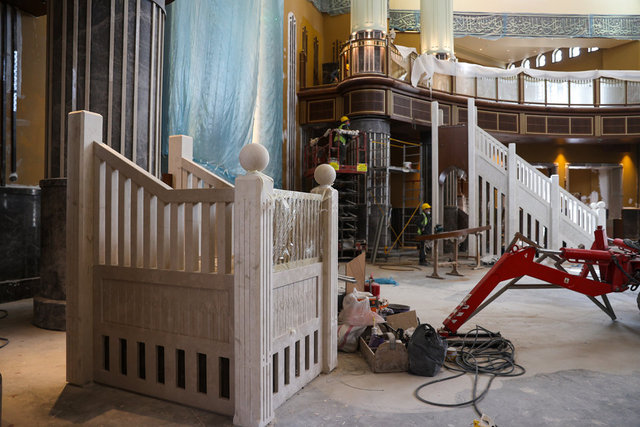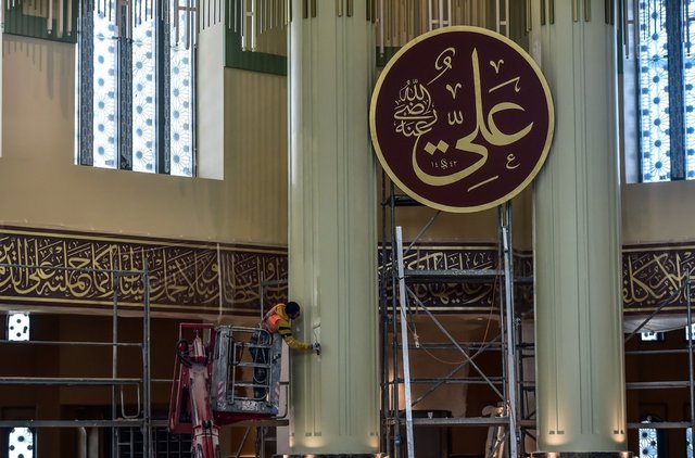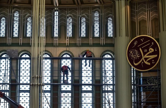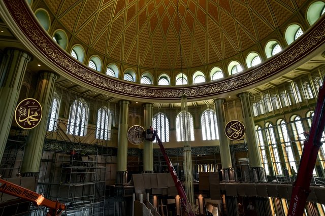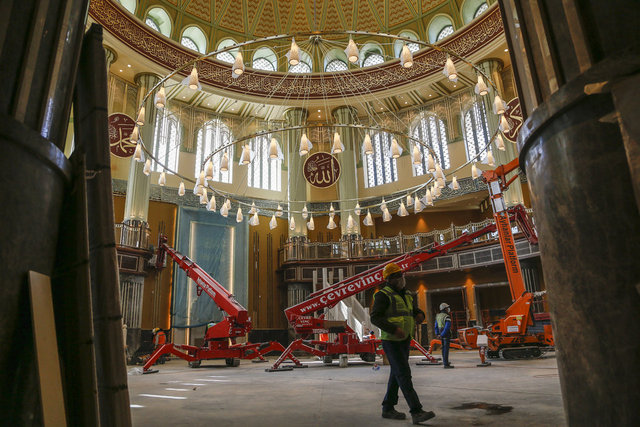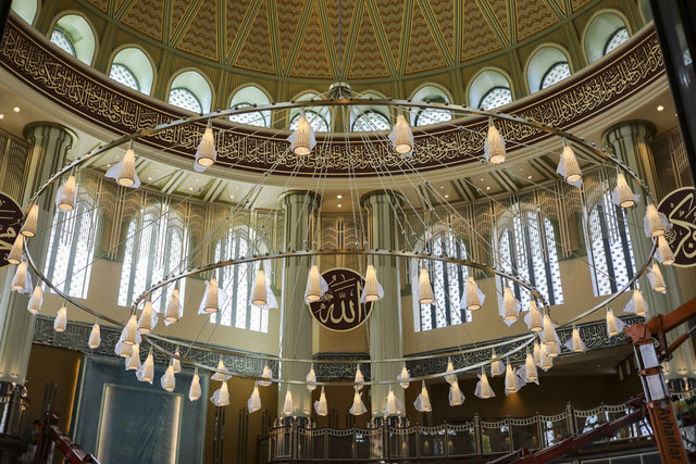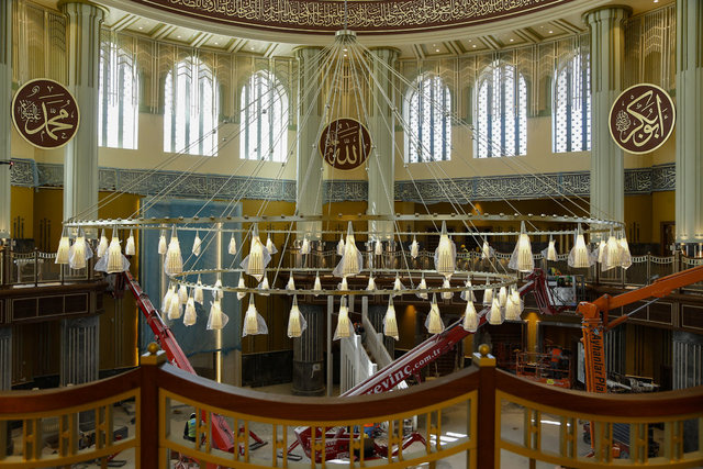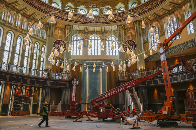 Caminin 12 metre çapında, 20 metre yüksekliğindeki 60 ışıklı dev avizesi takıldı. Avizenin elektrik testleri yapıldı.