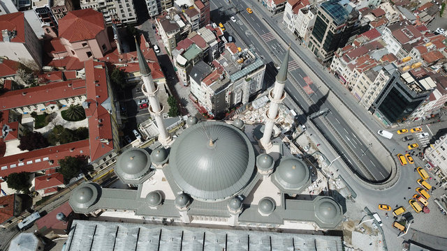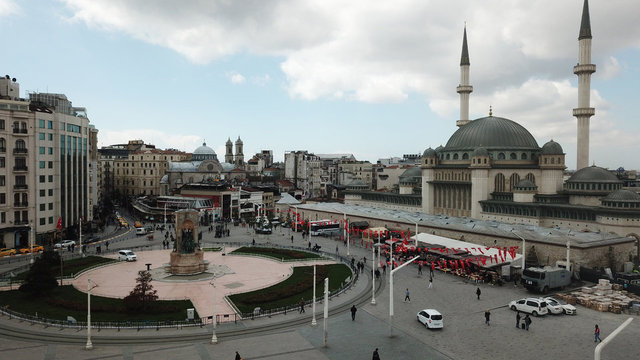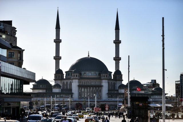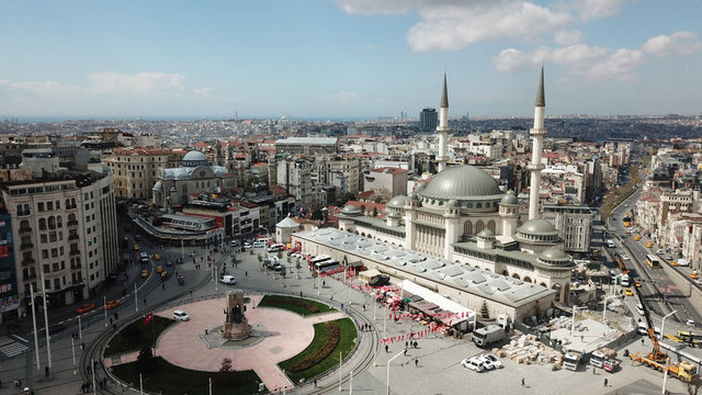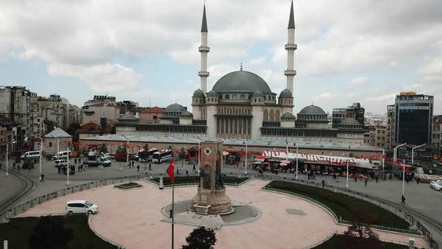 Taksim'de yapımı devam eden caminin 20 metre yüksekliğinde 12 metre çapındaki dev avizesi ile 7 metre yüksekliğindeki kapısının kasası takıldı. Camide ince işçiliğe geçildi.
