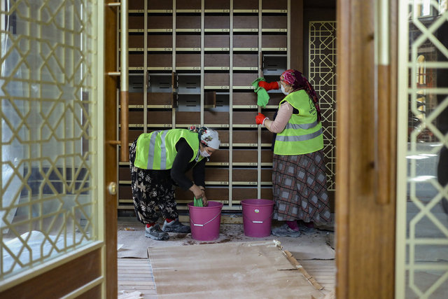 Cami içinde tamamlanan bölümlerde ise, temizlik çalışmaları başladı.