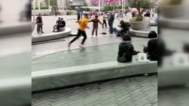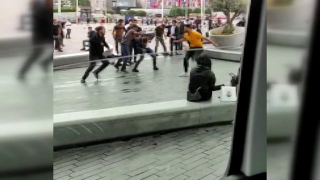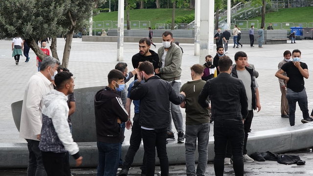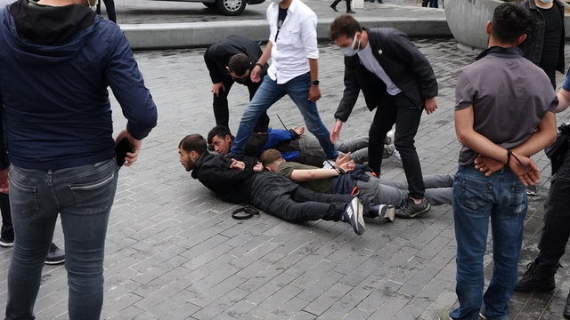 Taksim Meydanı'nda kemerlerin çıkarılıp tekme ve yumrukların havada uçuştuğu kavga çevredekilerin cep telefonu kamerasına anbean yansıdı.