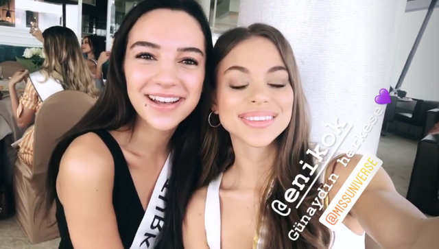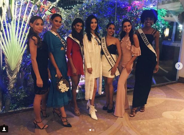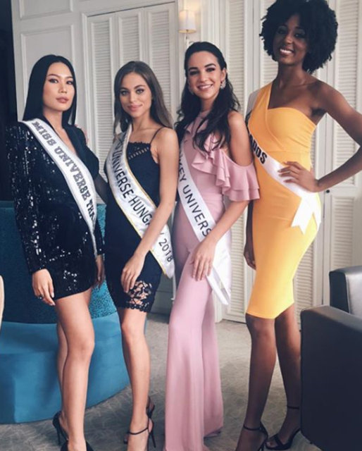 Tara de Vries, kampta Tayland güzeli Ning Sophida, Macaristan güzeli Eniko Kecskes ve Barbados güzeli Meghan Theobalds ile çektirdiği fotoğrafı dün Instagram hesabından takipçileriyle paylaştı.