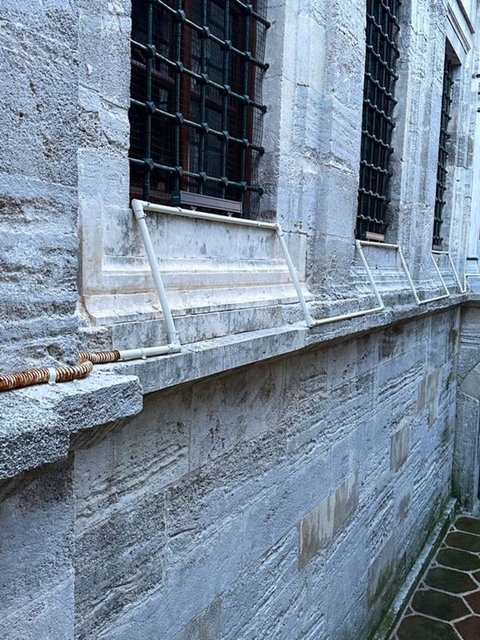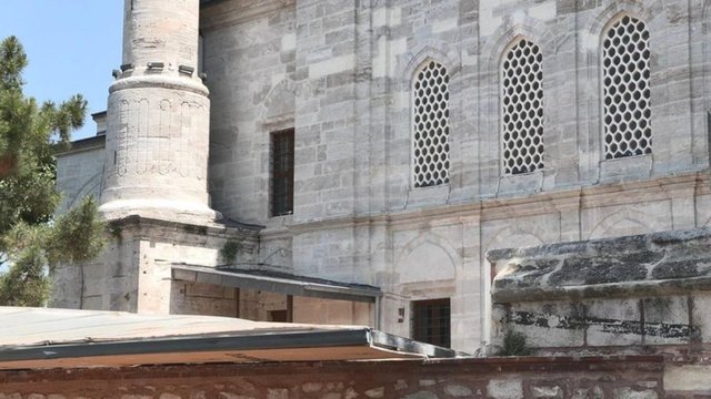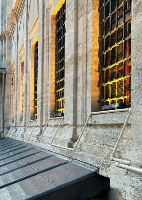 Dr. Öğretim Üyesi Buket Akçay Güven, "Caminin dış cephesinde pencerelerin önünde aydınlatma amaçlı U biçiminde plastik borular geçirilmiş olduğunu görüyoruz. Muhtemelen bunların içerisinden o aydınlatma için elektrik borularını geçirmişler. Burada yani çok açıkça aykırı bir durum var. Bunu hani biz korumayla ilgili çalışan uzmanlar, arkeologlar, sanat tarihçilerinin de gördüğü ayrıca sokaktan geçen insanın da fark edeceği şekilde hem estetik yönden aykırı bir durum var hem de müdahale açısından bir hata var. Biz genel olarak tarihi yapıların aydınlatılmasında yapıya minimum müdahale ilkesini benimsiyoruz. Yani, hem yapının dış görünümüne estetik durumuna minimum bir etki olsun, yaptığımız eklemeler mümkün olduğunca görünmesin istiyoruz ama burada bariz bir şekilde görünür. Yapının kimliğiyle malzemesiyle de aykırı plastik borular geçirilmiş" dedi.
