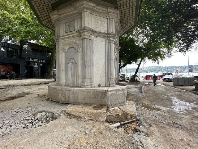 Çimentoyla sabitlendi! Tarihi Emirgan Çeşmesi'ne kepçeli zarar iddiası