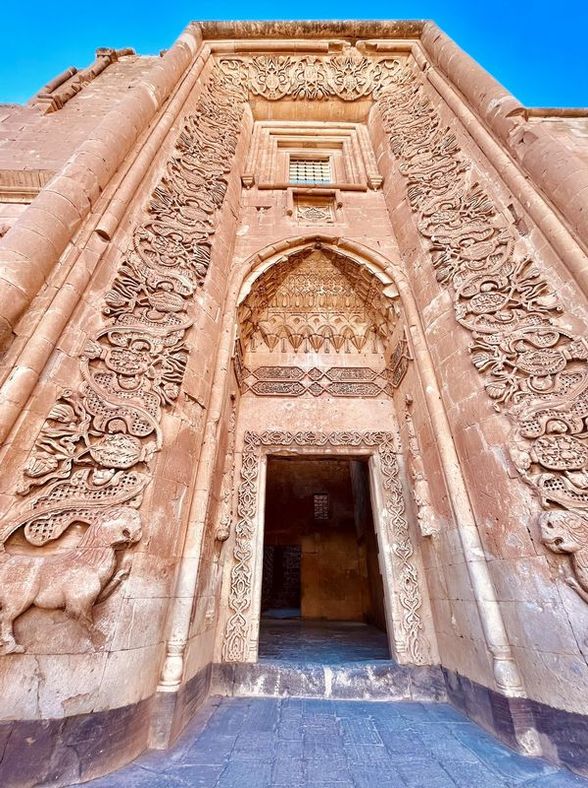 Osmanlı Devleti'nin Doğu Anadolu Bölgesi'ndeki en önemli eserlerinden biri olan ve sarp kayalıklar arasındaki bir tepede yer alan İshak Paşa Sarayı, ihtişamlı görüntüsünün yanında iç mimarisiyle de göz kamaştırıyor.