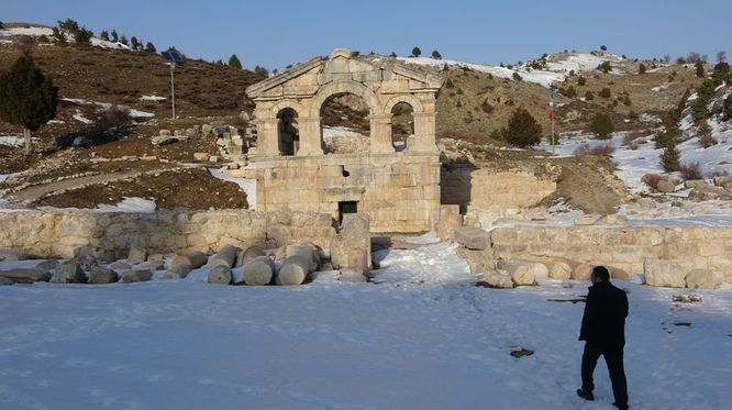 Tarihteki ilk yazılı anlaşma olan Kadeş Anlaşması'na imza atan kralın kızı Puduhepa'nın yaşadığı 3 bin 500 yıllık Şar Antik Kenti kış manzarası ile hayran bıraktı