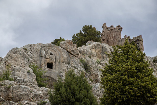 İsaura Antik Kentini çevreleyen kalenin, sur ve burçlarının bir bölümü ayakta duruyor.