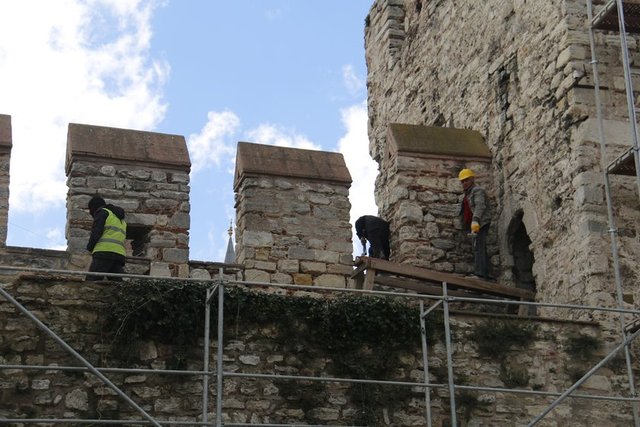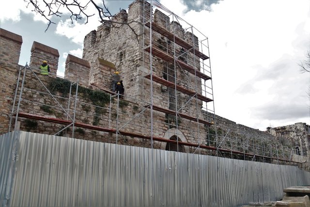 Restorasyon çalışmalarının titizlikle yürütüldüğü sarayın birçok bölümünde iskelelerin olduğu görüldü. Görüntülerde Topkapı Sarayı'nın binalarından avlu ve bahçelerine kadar birçok noktasında güçlendirme, restorasyon, peyzaj, teşhir ve tanzim çalışmaları sürdüğü görüldü.