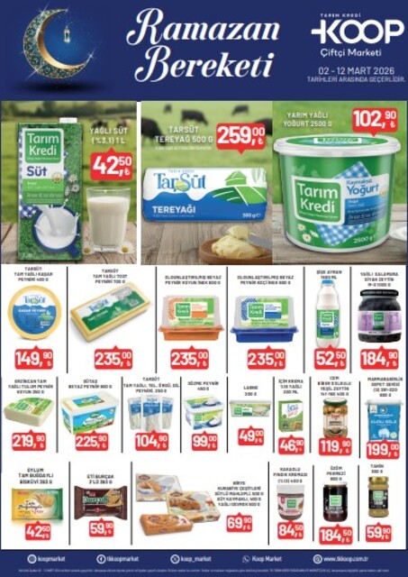 Tarım Kredi Kooperatif KOOP Market mart ayına ve Ramazan'a özel yeni indirimli ürünler listesi aktüel kataloğu ile paylaşıldı. Tarım Kredi Marketlerde birçok farklı ürün indirimli fiyatlarıyla satışa sunuluyor. Tarım Kredi Marketlerde 2-12 Mart tarihleri arasında satışa sunulacak fırsatlar yayımlandı. İşte mart ayına özel güncel Tarım Kredi Kooperatif aktüel broşürü...
