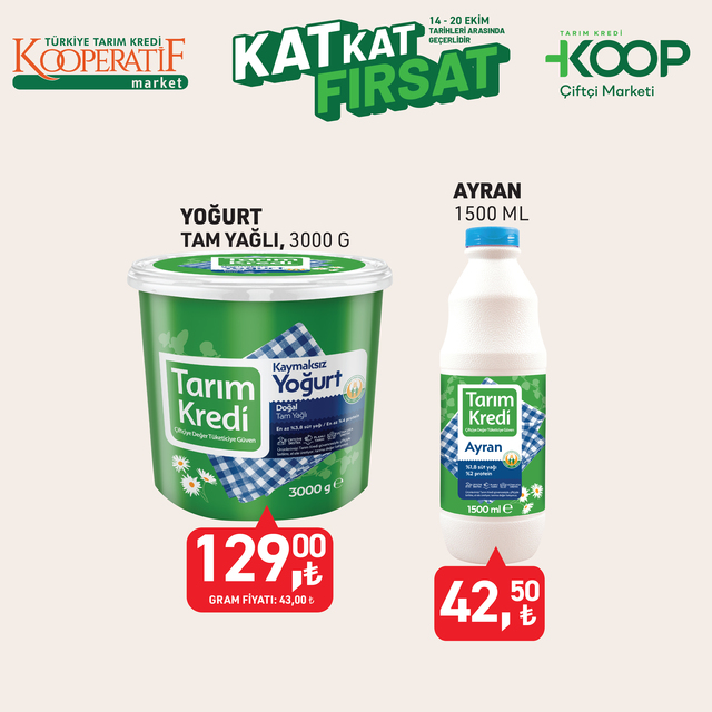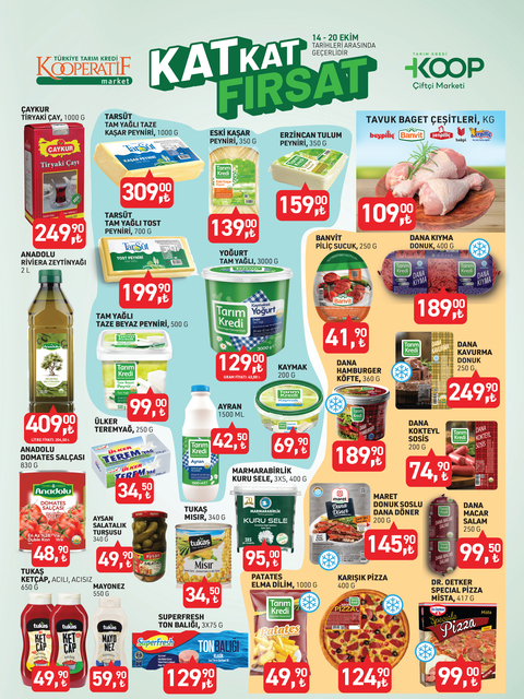 Tarım Kredi Kooperatif Marketleri, ekim ayına özel kampanyasını duyurdu. 14-20 ekim kataloğunda yer alan indirimli ürünler arasında temel gıdadan temizlik malzemelerine kadar birçok ihtiyaç ürünü tüketicilerle buluşuyor. İşte Tarım Kredi Market 20 Ekim'e kadar geçerli indirimli ürünler kataloğu ve fiyat listesi...