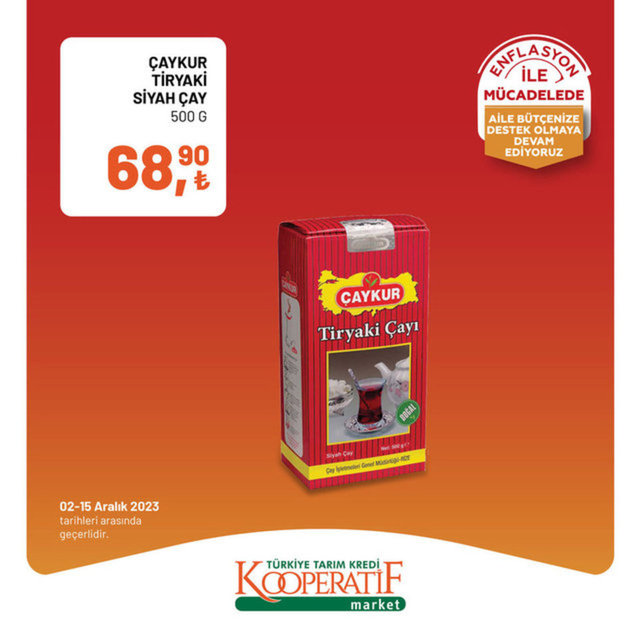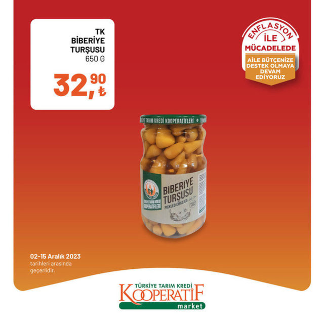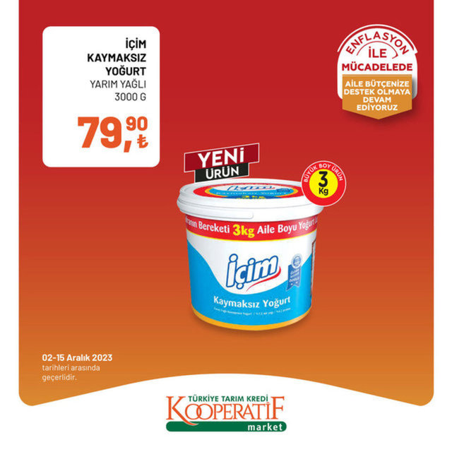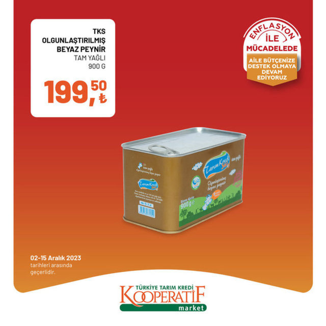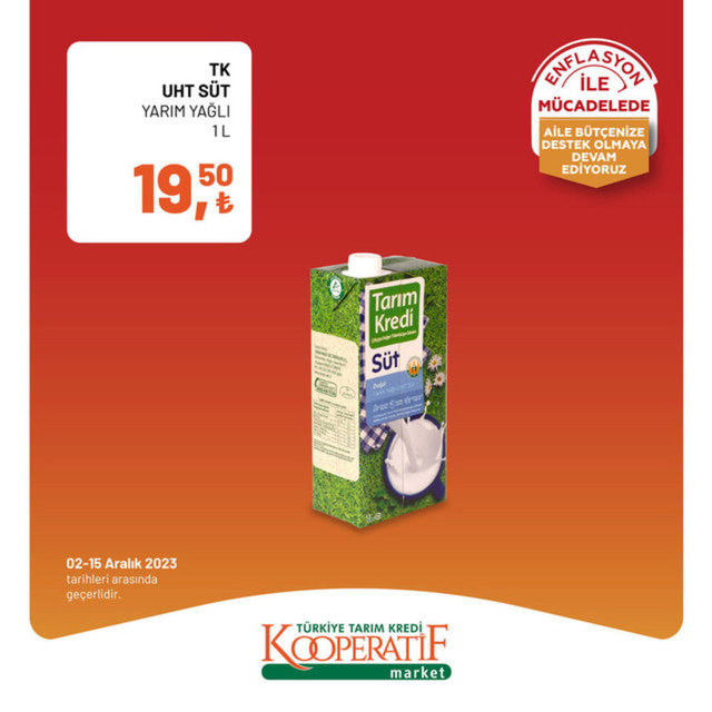 Tarım Kredi Kooperatif Market 3-15 Aralık indirimli ürünler kataloğu yayımlandı. Tarım Kredi Market enflasyon ile mücadele kapsamında indirimli ürünleri alışverişseverlerle buluşturmaya devam ediyor. Tarım Kredi Kooperatif Market 3-15 Aralık indirimli ürünler kataloğunda zeytinyağından, et ürünlerine, çaydan, süt ve süt ürünlerine daha birçok ürün raflardaki yerini aldı. İşte 3-15 Aralık 2023 Tarım Kredi Market indirimli ürünler fiyat listesi...