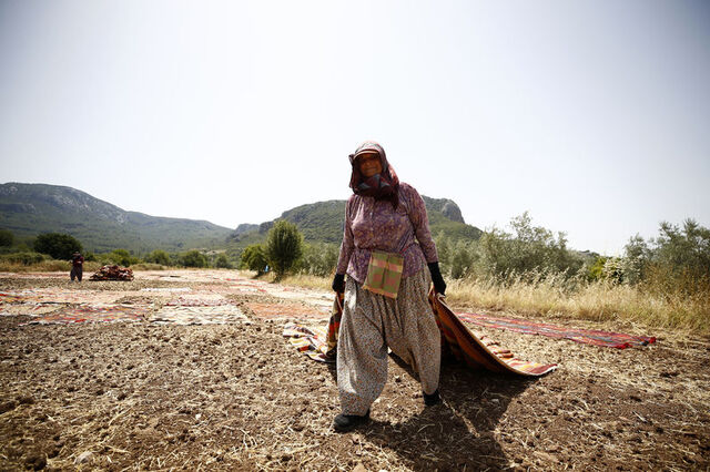Halı şirketlerinin mevsimlik olarak çalıştırdığı kadınlar, aile ekonomisine katkı sağlamak amacıyla 40 derece sıcaklığın altında özenle serdikleri halıları her gün kontrol ediyor.