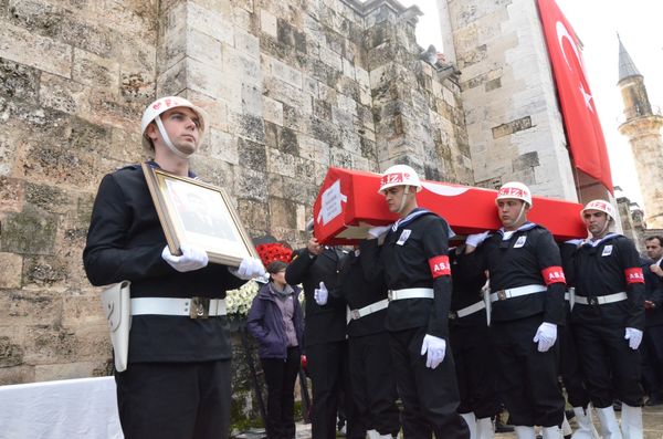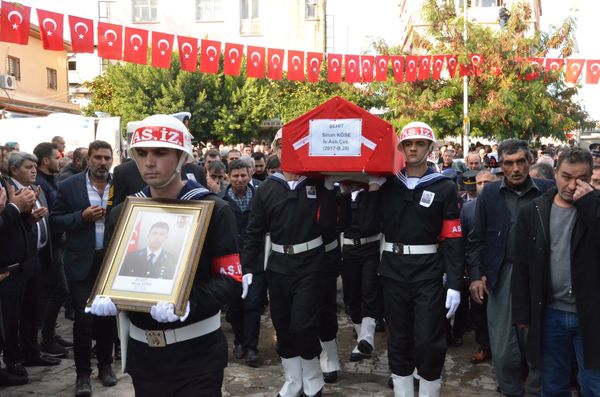 Suriye'nin Resulayn kentinin güneyinde yol kontrolü yaparken, PKK/YPG'li teröristlerin bomba yüklü araçla düzenlediği saldırıda şehit 4 askerden biri olan Tarsuslu Astsubay Sinan Köse, son yolculuğuna uğurlandı.